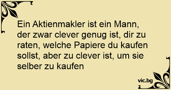 Ein Aktienmakler ist ein Mann, der zwar clever genug ist, dir zu raten, welche Papiere du kaufen sollst, aber zu clever ist, um sie selber zu kaufen