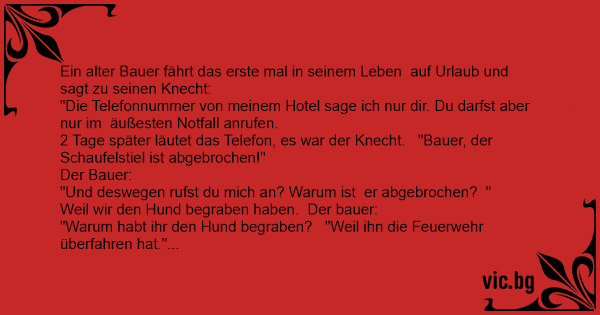 Ein alter Bauer fährt das erste mal in seinem Leben auf Urlaub und sagt zu seinen Knecht: