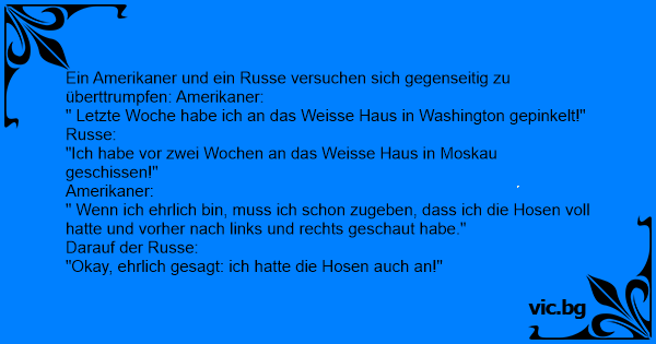 Ein Amerikaner und ein Russe versuchen sich gegenseitig zu überttrumpfen: Amerikaner: