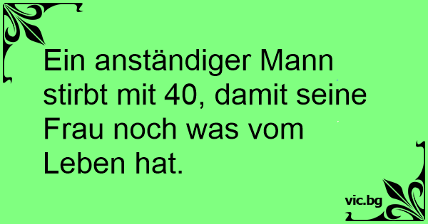 Ein anständiger Mann stirbt mit 40, damit seine Frau noch was vom Leben hat.