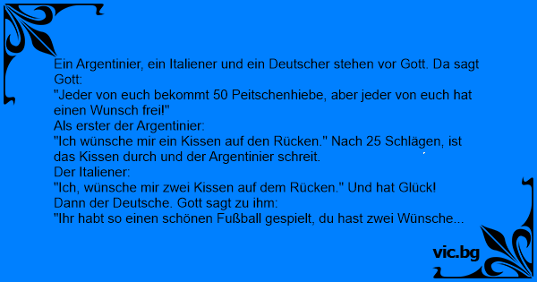 Ein Argentinier, ein Italiener und ein Deutscher stehen vor Gott. Da sagt Gott: