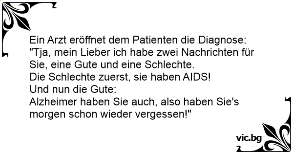 "Tja, mein Lieber ich habe zwei Nachrichten für Sie, eine Gute und eine Schlechte.