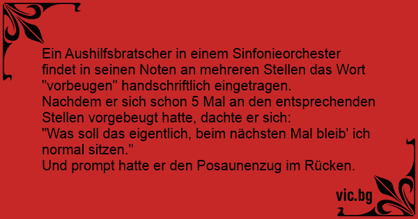 Ein Aushilfsbratscher in einem Sinfonieorchester findet in seinen Noten an mehreren Stellen das Wort "vorbeugen" handschriftlich eingetragen.