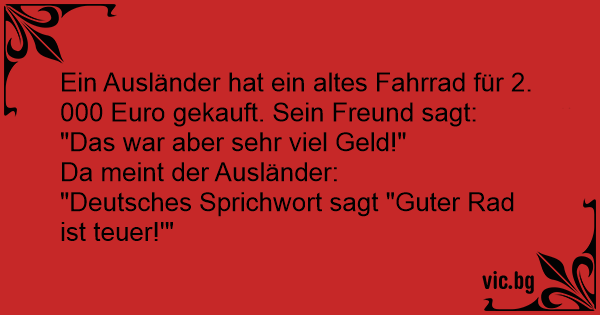 Ein Ausländer hat ein altes Fahrrad für 2. 000 Euro gekauft. Sein Freund sagt: