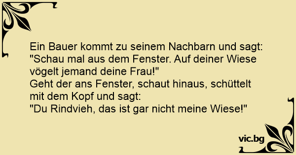 "Schau mal aus dem Fenster. Auf deiner Wiese vögelt jemand deine Frau!"