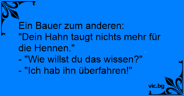 "Dein Hahn taugt nichts mehr für die Hennen."