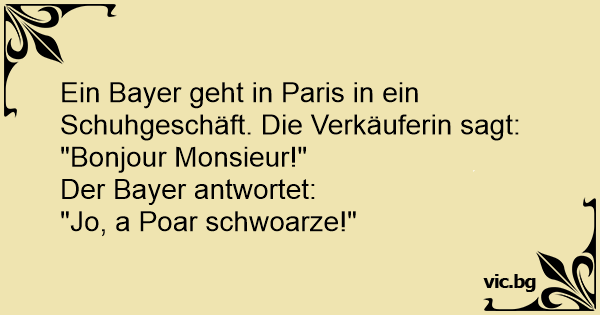 Ein Bayer geht in Paris in ein Schuhgeschäft. Die Verkäuferin sagt: