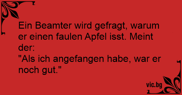 Ein Beamter wird gefragt, warum er einen faulen Apfel isst. Meint der:
