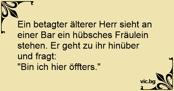 Ein betagter älterer Herr sieht an einer Bar ein hübsches Fräulein stehen. Er geht zu ihr hinüber und fragt: