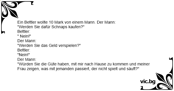 Ein Bettler wollte 10 Mark von einem Mann. Der Mann: