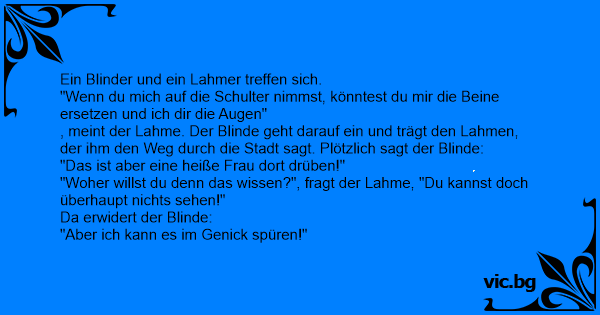 "Woher willst du denn das wissen?", fragt der Lahme, "Du kannst doch überhaupt nichts sehen!"