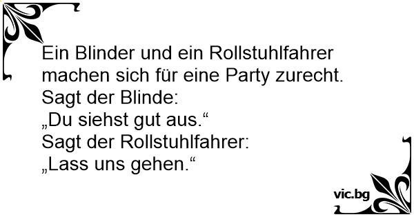 Ein Blinder und ein Rollstuhlfahrer machen sich für eine Party zurecht. Sagt der Blinde: