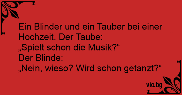 Ein Blinder und ein Tauber bei einer Hochzeit. Der Taube: