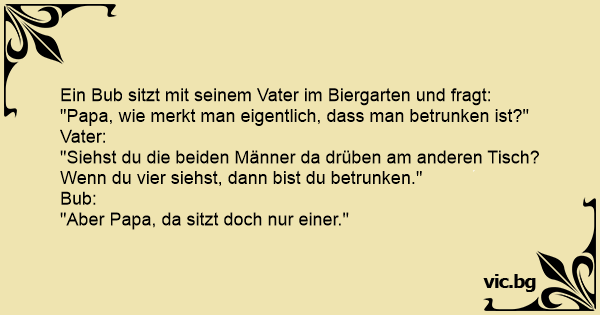 "Papa, wie merkt man eigentlich, dass man betrunken ist?"