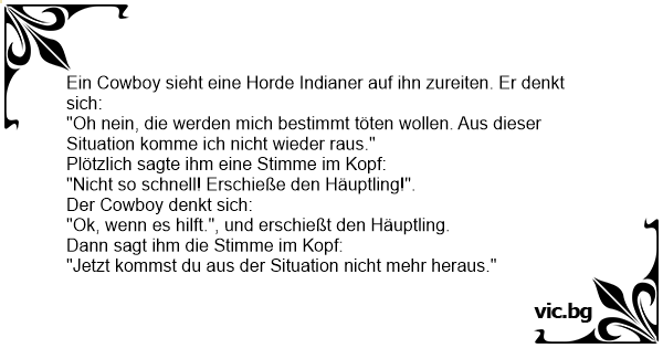 Ein Cowboy sieht eine Horde Indianer auf ihn zureiten. Er denkt sich: