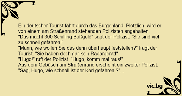 Ein deutscher Tourist fährt durch das Burgenland. Plötzlich wird er von einem am Straßenrand stehenden Polizisten angehalten.