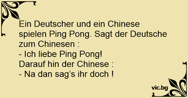 Китаец и българин играя пинг понг. Бълганина: - Обичам пинг-понг! Китаеца: - Кажи и го тогава ...