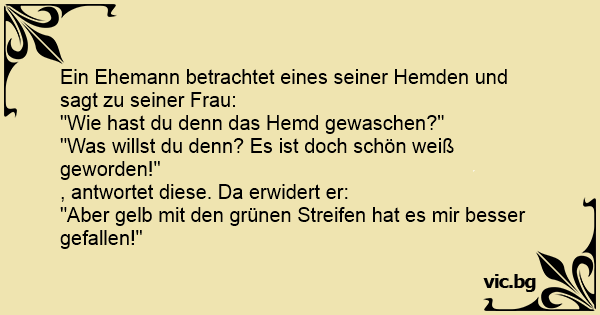 Ein Ehemann betrachtet eines seiner Hemden und sagt zu seiner Frau: