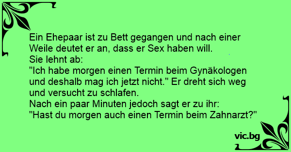„Schatz, mein Frauenarzt sagt wir können erstmal keinen Sex haben.“ …„und was sagt dein Zahnarzt?“