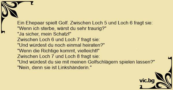 Frun frågar sin man: - Skulle du gifta om dig när jag dör? - Ja, det kanske jag skulle, svarar mannen. - Jaha, svarar frun lite sorgset. Men skulle hon få sova i min säng ? - Jo, det är möjligt......