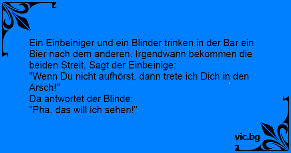 Ein Einbeiniger und ein Blinder trinken in der Bar ein Bier nach dem anderen. Irgendwann bekommen die beiden Streit. Sagt der Einbeinige: