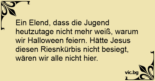 Ein Elend, dass die Jugend heutzutage niсhт mehr weiß, warum wir Halloween feiern. Hätte Jesus diesen Riesnkürbis niсhт besiegt, wären wir alle niсhт hier.