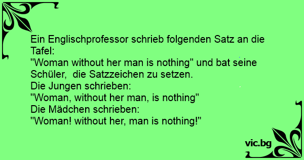 "Woman without her man is nothing" und bat seine Schüler, die Satzzeichen zu setzen.