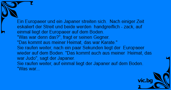 Ein Europaeer und ein Japaner streiten sich. Nach einiger Zeit eskaliert der Streit und beide werden handgreiflich - zack, auf einmal liegt der Europaeer auf dem Boden.