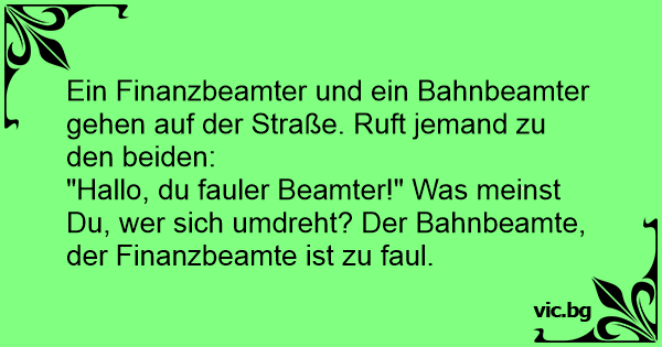 "Hallo, du fauler Beamter!" Was meinst Du, wer sich umdreht? Der Bahnbeamte, der Finanzbeamte ist zu faul.