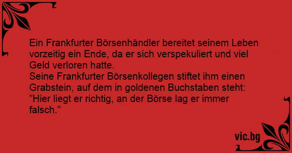 Ein Frankfurter Börsenhändler bereitet seinem Leben vorzeitig ein Ende, da er sich verspekuliert und viel Geld verloren hatte.