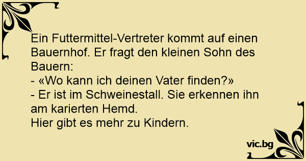Ein Futtermittel-Vertreter kommt auf einen Bauernhof. Er fragt den kleinen Sohn des Bauern: