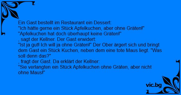 "Ich hätte gerne ein Stück Apfelkuchen, aber ohne Gräten!"