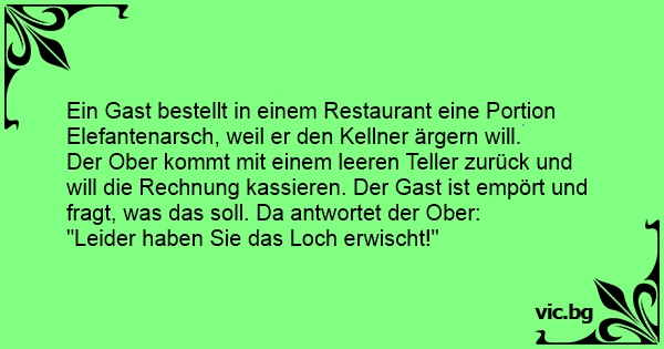 Ein Gast bestellt in einem Restaurant eine Portion Elefantenarsch, weil er den Kellner ärgern will.