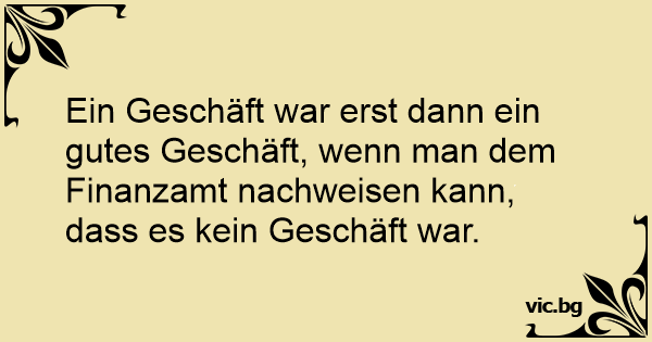 Ein Geschäft war erst dann ein gutes Geschäft, wenn man dem Finanzamt nachweisen kann, dass es kein Geschäft war.