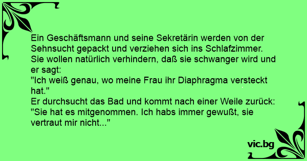 "Ich weiß genau, wo meine Frau ihr Diaphragma versteckt hat."