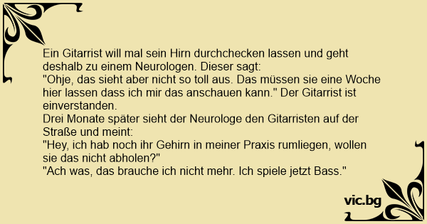 Ein Gitarrist will mal sein Hirn durchchecken lassen und geht deshalb zu einem Neurologen. Dieser sagt:
