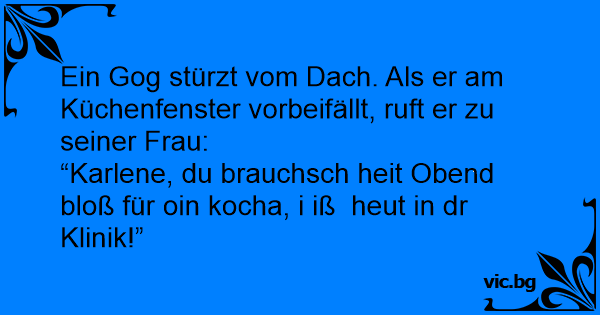 “Karlene, du brauchsch heit Obend bloß für oin kocha, i iß heut in dr Klinik!”