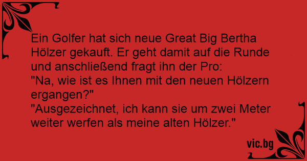 Ein Golfer hat sich neue Great Big Bertha Hölzer gekauft. Er geht damit auf die Runde und anschließend fragt ihn der Pro: