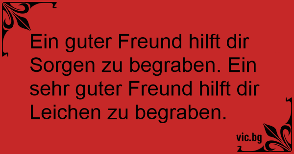 Ein guter Freund hilft dir Sorgen zu begraben. Ein sehr guter Freund hilft dir Leichen zu begraben.