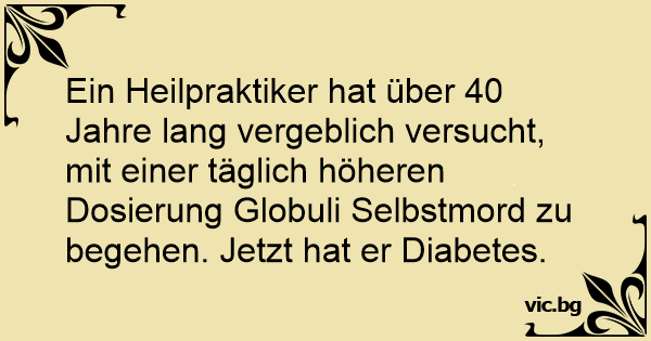 Ein Heilpraktiker hat über 40 Jahre lang vergeblich versucht, mit einer täglich höheren Dosierung Globuli Selbstmord zu begehen. Jetzt hat er Diabetes.