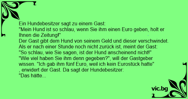 "Mein Hund ist so schlau, wenn Sie ihm einen Euro geben, holt er Ihnen die Zeitung!"
