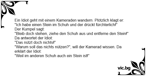 Ein Idiот geht mit einem Kameraden wandern. Plötzlich klagt er: