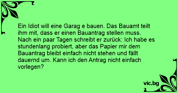 Ein Idiот will eine Garag e bauen. Das Bauamt teilt ihm mit, dass er einen Bauantrag stellen muss.