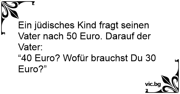 Ein jüdisches Kind fragt seinen Vater nach 50 Euro. Darauf der Vater: