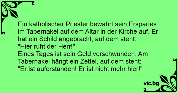 Ein katholischer Priester bewahrt sein Erspartes im Tabernakel auf dem Altar in der Kirche auf. Er hat ein Schild angebracht, auf dem steht: