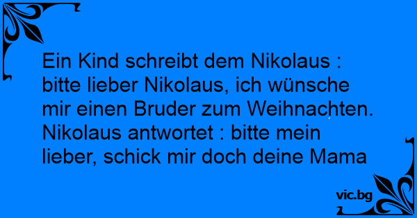 Ein Kind schreibt dem Nikolaus : bitte lieber Nikolaus, ich wünsche mir einen Bruder zum Weihnachten.