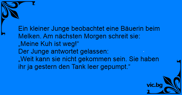 Ein kleiner Junge beobachtet eine Bäuerin beim Melken. Am nächsten Morgen schreit sie: