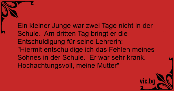 — Алло! Маріє Іванівно? Вовочка не зможе прийти сьогодні до школи, він хворий. - Здравейте госпожо Петрова. Иванчо няма да може да дойде на училище днес, болен е Teacher (on phone): - Алло! Марья Ивановна? Вовочка не сможет прийти сегодня в школу, он болен. Na escola o professor fala ao telefone: — O senhor está dizendo que o Joãozinho está gripado e não pode vir à aula? — Exatamente! — respondeu a voz grossa, do outro lado da linha. — Mas quem está falando? — É o meu pai. Pupil (on phone): My son has a bad cold and won't be able to come to school today. School Secretary: Who is this? Pupil: This is my father speaking! A student called into school as his father in the hopes of getting out of school that day. “My son had the flu and can’t make it to school today,” he said. “Who is this speaking,” said the secretary. "This is my father!” Dzwoni Jasiu do nauczycielki i mówi: - Proszę zwolnić dziś Jasia z lekcji. - A kto mówi? - Moja mama. Llaman a la escuela: - ¿Alo? - ¿Si? ¡Buenos días! - Mi niño hoy no pudo ir a la escuela porque estaba enfermo. - ¿Ah sí? ¿Y con quién hablo? - Con mi papá. Una persona telefonea a la escuela para hablar con el director, y le dice: - Buenos días, señor director. Llamo para comunicarle que el alumno Luis Pérez no podrá asistir hoy a clase. - De acuerdo,... Eleven ringer til skolen en morgen: – Jeg tror det er best sønnen min blir hjemme idag. Han er ikke riktig frisk. – Ja vel, hvem er det som ringer. – Det er faren min. Like før skolen starter, kimer telefonen på kontoret: – Hei, jeg tror det er best at sønnen min blir hjemme fra skolen i dag. Han er nemlig ikke helt i form. – OK, men hvem er det som ringer? –... - Hallo, er det skoleinspektøren? Bo Brian kommer ikke i skole i dag. Han er syg! - Undskyld, hvem taler jeg med? - Det er min mor! Jasiu dzwoni do dyrektora i mówi: - Jasiu nie przyjdzie dzisiaj do szkoły, bo zachorował. - A kto mówi? - Mój tata... Toto appele sa prof pour sécher les cours. - Bonjour madame mon fils ne sera pas présent pour les cours d'aujourd'hui il est malade. - Oui avec qui suis-je entrain de parler ? - Avec mon pére. - Doamnă învăţătoare, să ştiţi că fiul meu nu poate veni azi la şcoală! se auzi o voce de copil. - Dar cu cine vorbesc? - Cu tatăl meu! La directrice de l'école reçoit un appel téléphonique: - Bonjour, je voulais vois dire que Jules ne viendra pas aujourd'hui, il est malade... - D'accord, qui est à l'appareil? - C'est mon papa... Χτυπάει το τηλέφωνο στο σχολείο. - Εμπρός, απαντά η δασκάλα. - Καλημέρα Σας. Πήρα να σας πω ότι ο Τοτός δεν θα μπορέσει να έρθει σήμερα στο σχολείο. - Ποιος είναι στο τηλέφωνο παρακαλώ; - Ο μπαμπάς...