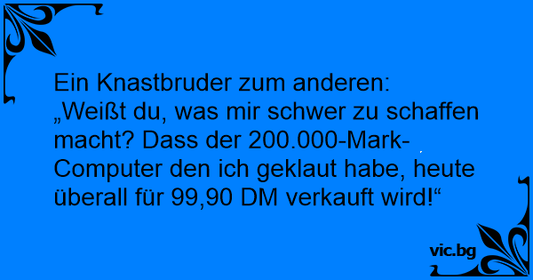 „Weißt du, was mir schwer zu schaffen macht? Dass der 200.000-Mark-Computer den ich geklaut habe, heute überall für 99,90 DM verkauft wird!“