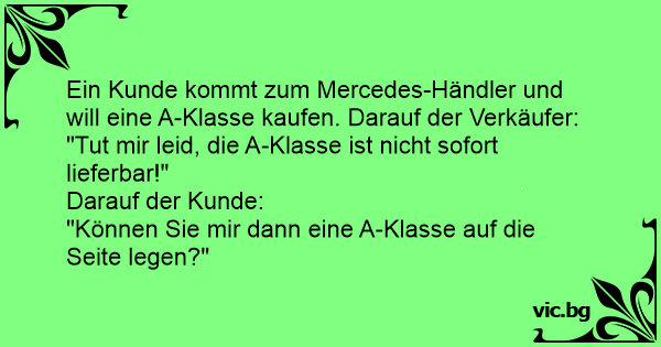 Ein Kunde kommt zum Mercedes-Händler und will eine A-Klasse kaufen. Darauf der Verkäufer: